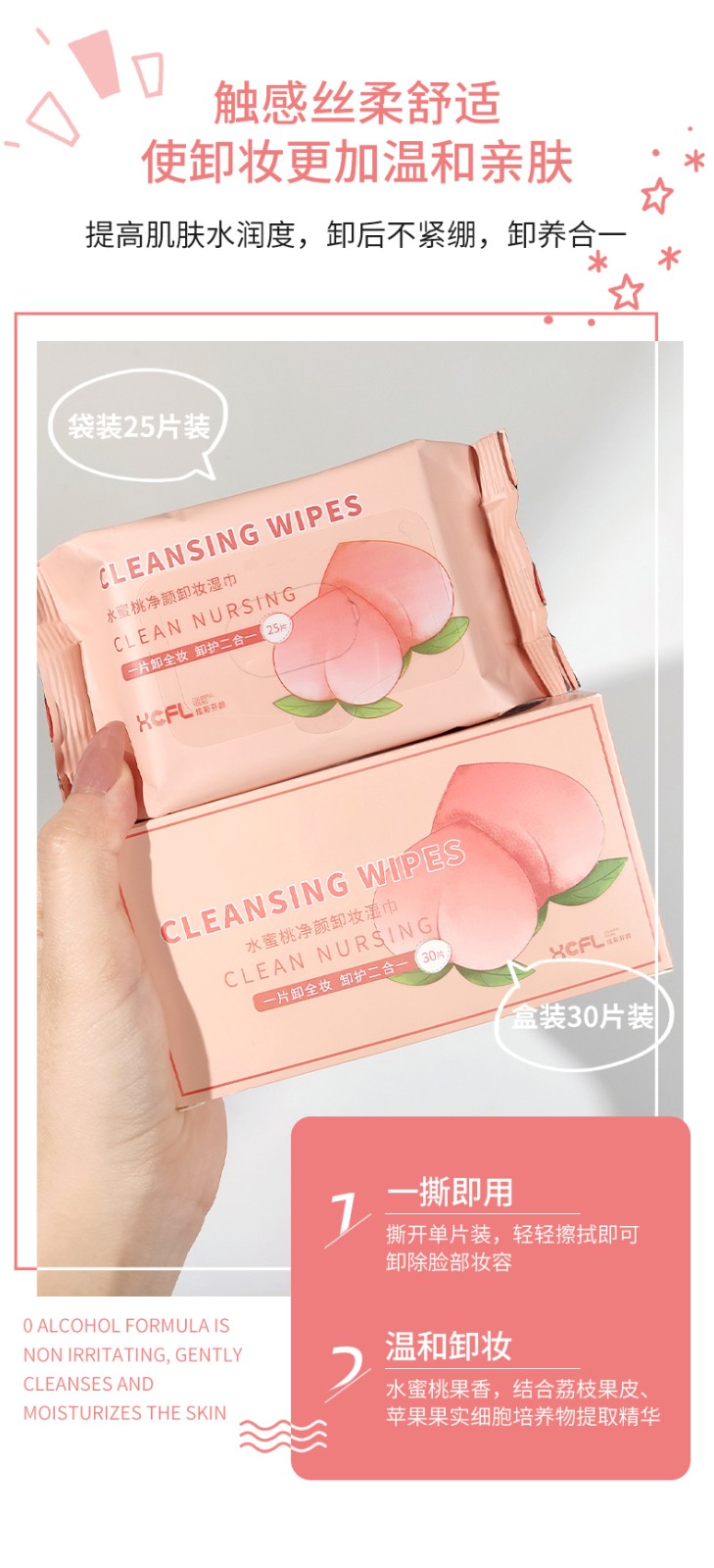 F7203-水蜜桃净颜卸妆湿巾25片